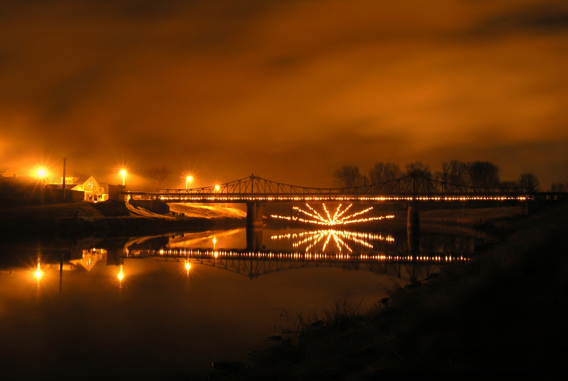 Vezměte dostatečně starý a zajímavý most zapsaný do seznamu kulturních památek. Dále potřebujete 600 kusů zavařovacích sklenic o objemu 5 litrů, 600 svíček a 3 kilometry pevného provázku. Vymyslete obrazec, který chcete vytvořit. Vhodné je zvolit obrazec osově symetrický, který vám umožní využít odrazu světla od vodní hladiny. Vypočítejte délky jednotlivých provázků, které ponesou sklenice se svíčkami, tak aby jednotlivé svíčky vytvořily konturu či plochu obrazce.