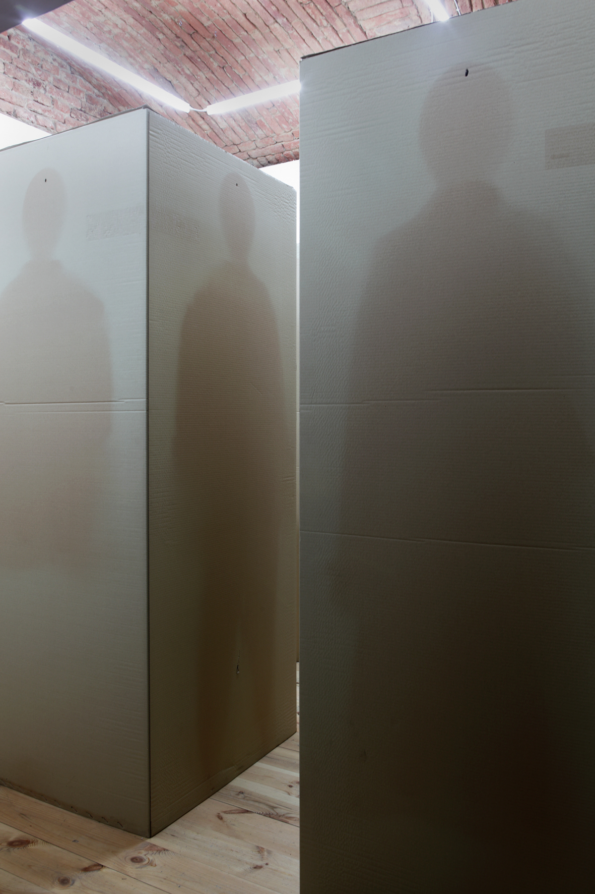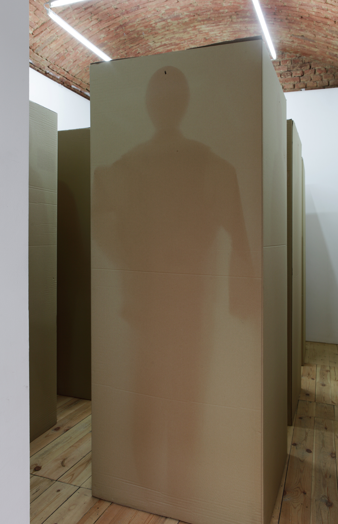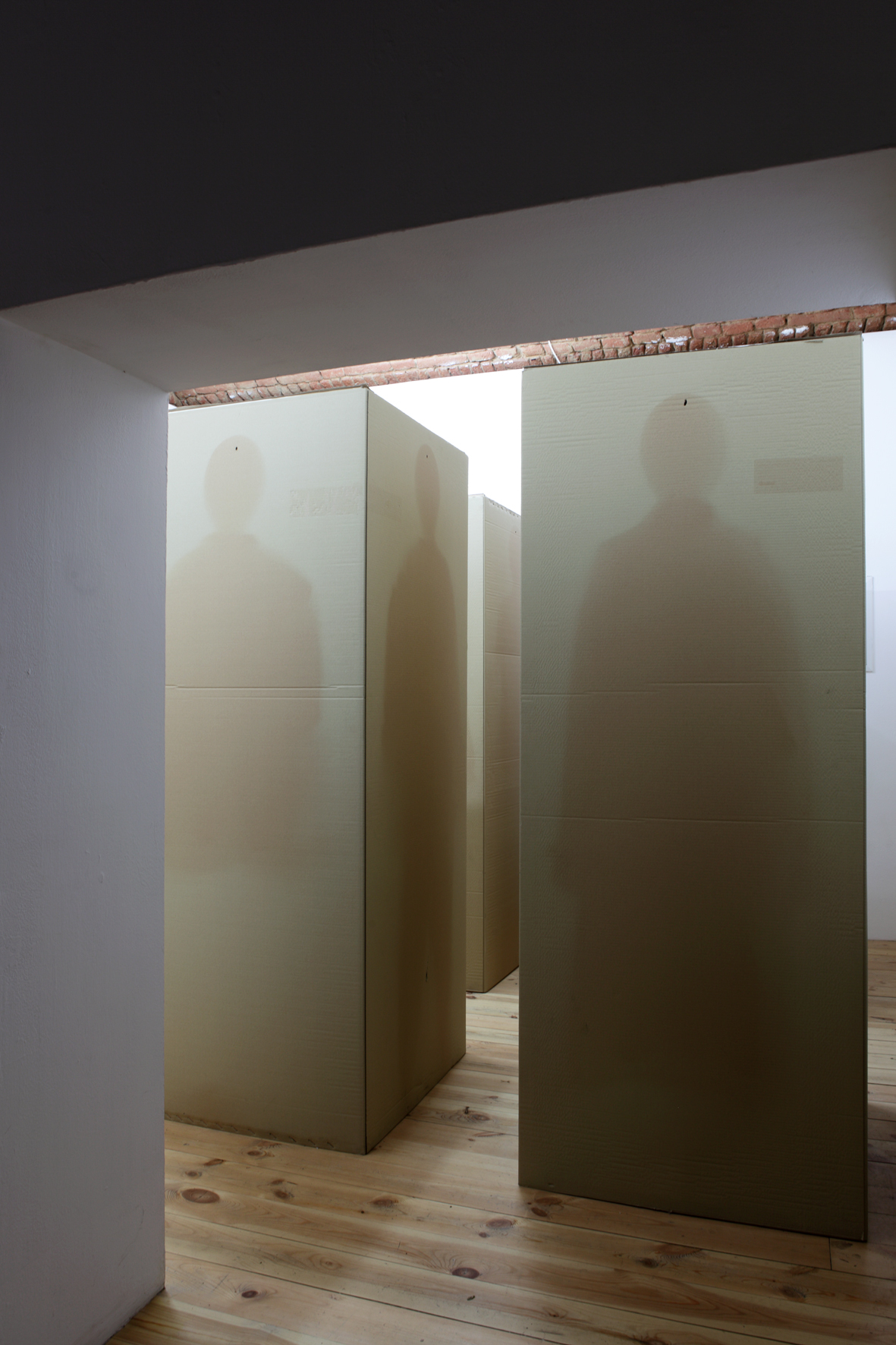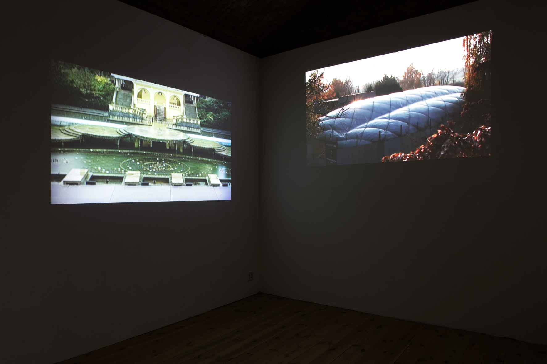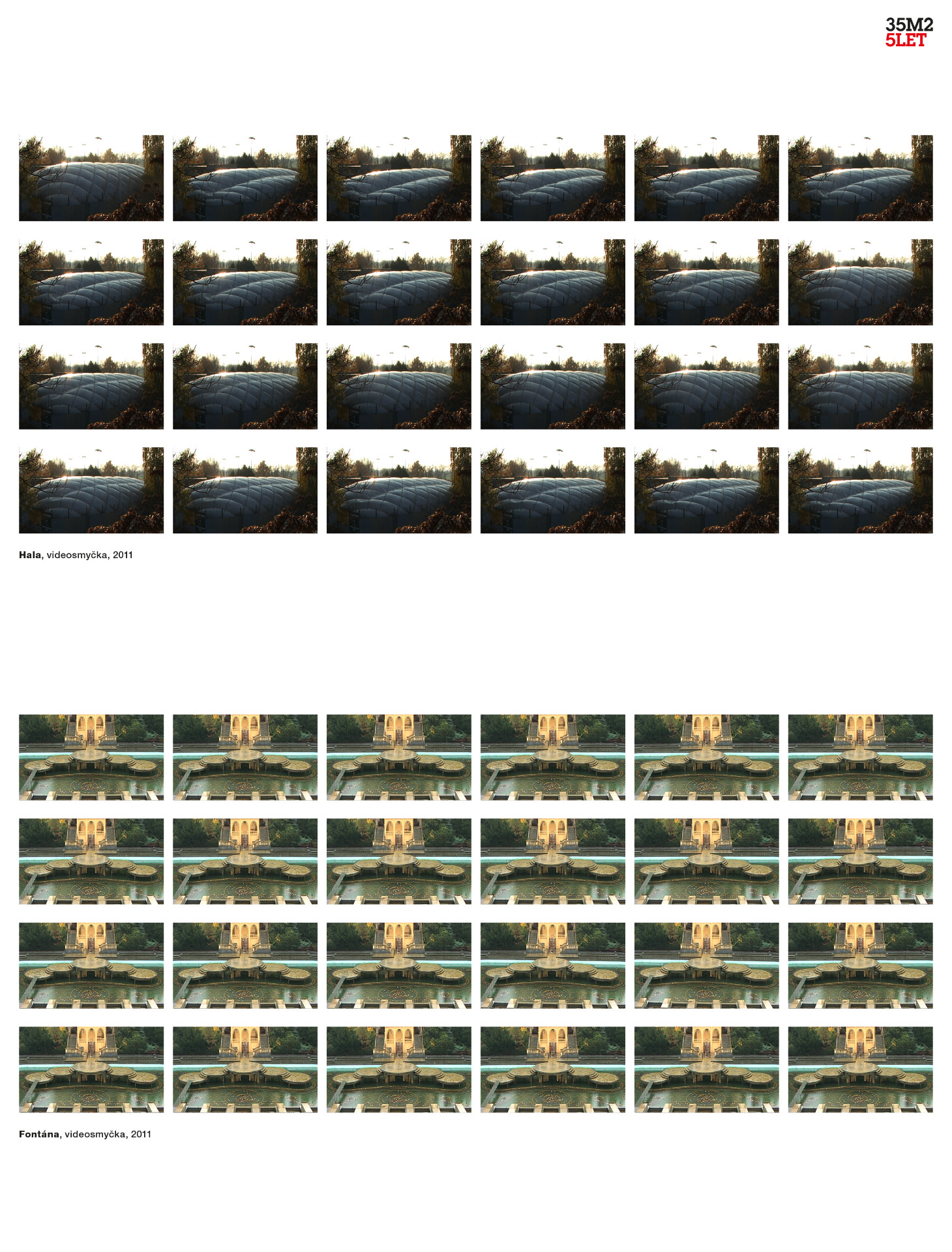 První část instalace v galerii 35M2 tvoří papírové objekty pocházející z výstavy ze zemědělského muzea. Je z nich vytvořena poněkud klaustrofobní prostorová geometrická osnova. Divák je zde konfrontován pouze s částí nepřítomného celku a s předměty, které již ztratily původní funkci. Tato skutečnost ale nijak nebrání, abychom hnědavé stopy na hnědavém povrchu nemohli vnímat jako bezděčné a samovolné fotografické stíny neznámých událostí. Druhá část sestává ze dvou pohyblivých obrazů s krajinným motivem, který zde volně inovuje zmíněný postup - vyvažování patosu a lapidárnosti. Na jednom sledujeme pneumatický pohyb sportovní haly připomínající dýchání a na druhém déšť, který se snáší na fontánu mimo čas její aktivní sezóny. Obě spojuje jakási ezoterní symbolika přirozeného pohybu a základních principů, jež mají působit oživujícím způsobem.